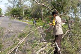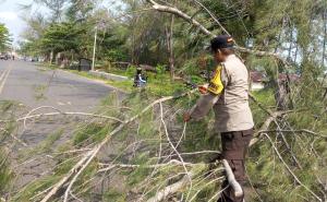 Bengkulu — Personel Ditsamapta Polda Bengkulu yang melaksanakan piket di Pos Shelter Pantai Panjang menggelar patroli jalan kaki di kawasan Pantai Panjang Bengkulu pada Senin (27/04/26) pagi.