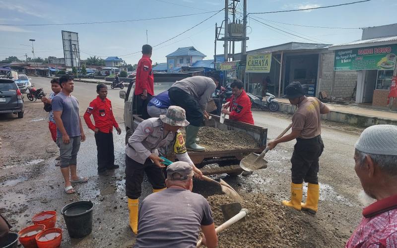 Bengkulu Utara - Polsek Ketahun melaksanakan kegiatan tanggap keselamatan berlalu lintas dengan melaksanakan penambalan jalan berlubang di Sekitar Wilayah Hukum Polsek Ketahun Rabu (19/06/2024).