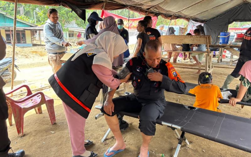 Tidak hanya menyediakan makanan siap santap, posko juga menjadi pusat layanan kesehatan bagi warga yang mengalami masalah pascabencana. Personel Batalyon C Pelopor bersama tim tenaga kesehatan dari Biddokkes RS Bhayangkara TK IV Batang Toru melayani pemeriksaan kesehatan bagi warga yang mengalami gangguan kesehatan akibat lingkungan pascabencana, seperti luka ringan, demam, hingga keluhan pernapasan.