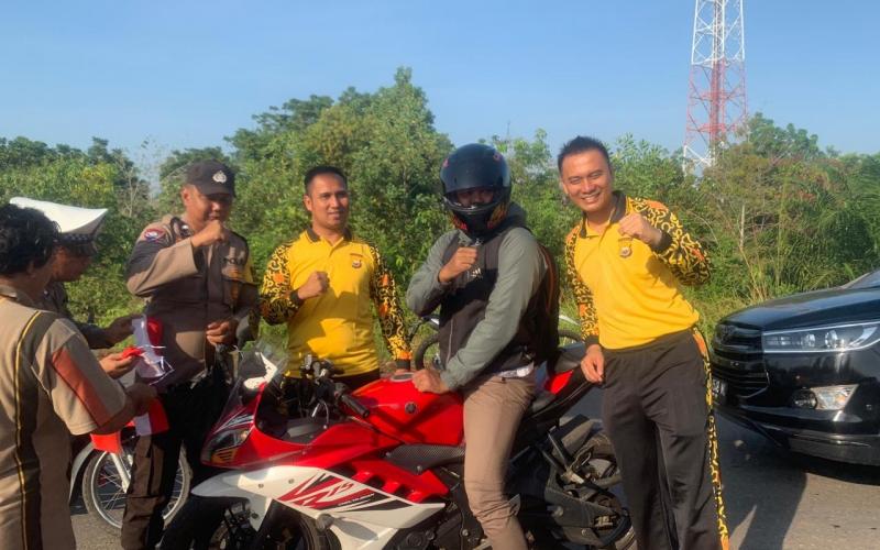 “Hari ini kami berikan bendera merah putih kepada pengendara kendaraan bermotor baik Mobil maupun Sepeda Motor sebanyak 100 bendera dan langsung kami pasangkan pada kendaraannya”, kata Kapolsek Ketahun.