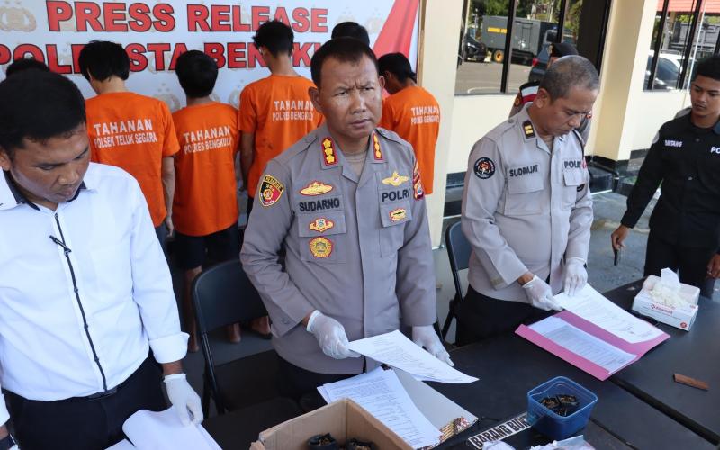 Dihadapan para awak media Kapolresta Bengkulu menyampaikan dalam keterangannya ada 5 kasus tindak pidana yang berhasil diungkap oleh Polresta Bengkulu dan Polsek Jajaran beberapa pekan terakhir, pertama ungkap kasus Narkoba oleh Satres Narkoba Polresta Bengkulu.