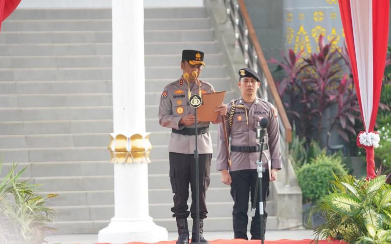 Upacara berlangsung secara tertib dan khidmat dengan rangkaian kegiatan menyanyikan Mars Polri, pengibaran Bendera Merah Putih, mengheningkan cipta, pembacaan teks Pancasila, pengucapan Tribrata dan Catur Prasetya, pembacaan Panca Prasetya Korpri, penyampaian amanat Inspektur Upacara, hingga ditutup dengan lagu Andhika Bhayangkara.