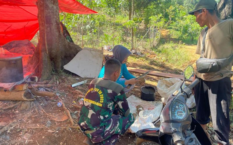 Di sela-sela kesibukan pembangunan fisik, para anggota Satgas TMMD terlihat membantu warga menyiapkan makanan di dapur lapangan sederhana yang didirikan di bawah pohon rindang, beralaskan tanah dan beratapkan terpal merah. Asap tipis dari kayu bakar menambah suasana khas pedesaan yang penuh keakraban.