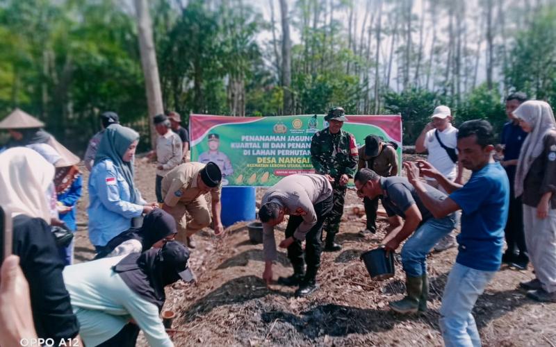 Lebong - Dalam rangka mendukung program ketahanan pangan, Polsek Lebong Utara Polres Lebong Polda Bengkulu, pada Selasa (29/7/2025), melaksanakan penanaman jagung serentak kuartal III di Desa Nangai Amen Kecamatan Lebong Utara.