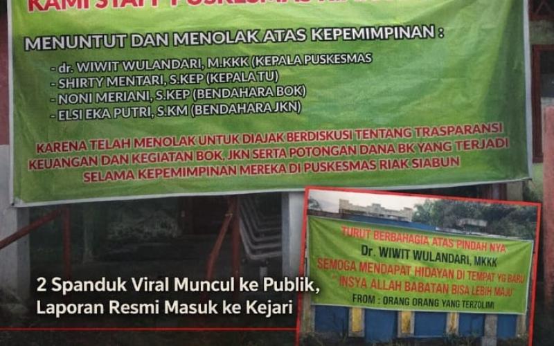 Namun demikian, belum ada keterangan resmi yang memastikan keterkaitan langsung antara isi spanduk tersebut dengan dugaan praktik yang dilaporkan di Puskesmas Riak Siabun. Dugaan tersebut masih memerlukan pembuktian serta klarifikasi dari pihak-pihak terkait.