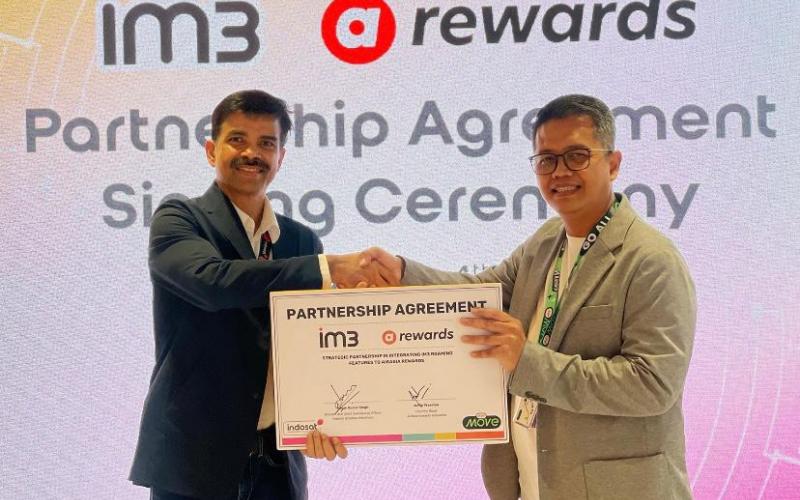 Jakarta, 5 Juni 2024- Indosat Ooredoo Hutchison (Indosat atau IOH) melalui brand IM3 menandatangani Nota Kesepahaman (MoU) dengan AirAsia rewards, program loyalitas pada platform OTA (Online Travel Agency) AirAsia MOVE. Kemitraan strategis ini akan memperluas akses lintas platform dengan mengintegrasikan AirAsia rewards untuk penukaran eSim dan paket data roaming IM3. Penandatanganan MoU dilakukan oleh Ritesh Kumar Singh, Director and Chief Commercial Officer Indosat Ooredoo Hutchison, dan Country Head AirAsia rewards Indonesia, Arifin Prasetyo yang berlangsung di Kantor Pusat Indosat, Jakarta Pusat.