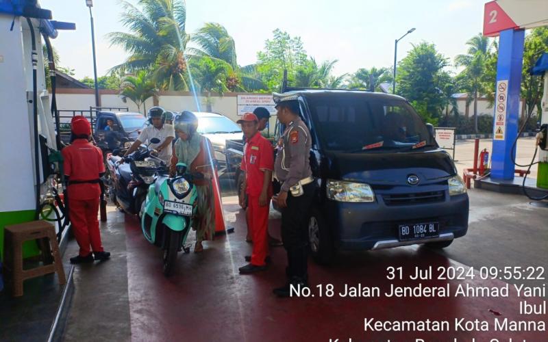 Bengkulu Selatan - Sat Lantas Polres Bengkulu Selatan Polda Bengkulu melaksanakan giat pengawasan pendistribusian dan pengisian BBM serta pengaturan arus lalulintas dimana dianggap berpotensi terjadinya lakalantas di kabupaten bengkulu selatan terutama pada jam jam sibuk aktifitas masyarakat, pada hari Rabu (31/07/24).