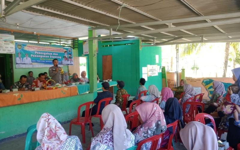 Bengkulu Selatan - Bhabinkamtibmas Polsek Pino Brigadir Jeffry dan Brigadir Redho Hadiri pencegahan dan penanganan stunting serta Gizi Buruk di Desa Puding Kecamatan Pino Kabupaten Bengkulu Selatan, Kamis (25/07/24).