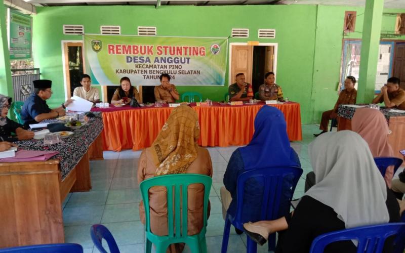 Bengkulu Selatan - Bhabinkamtibmas Polsek Pino Brigadir Redho Hadiri pencegahan dan penanganan stunting serta Gizi Buruk di Desa Anggut Kecamatan Pino Kabupaten Bengkulu Selatan, Sembari Jalin Keakraban, Senin (05/08/24).