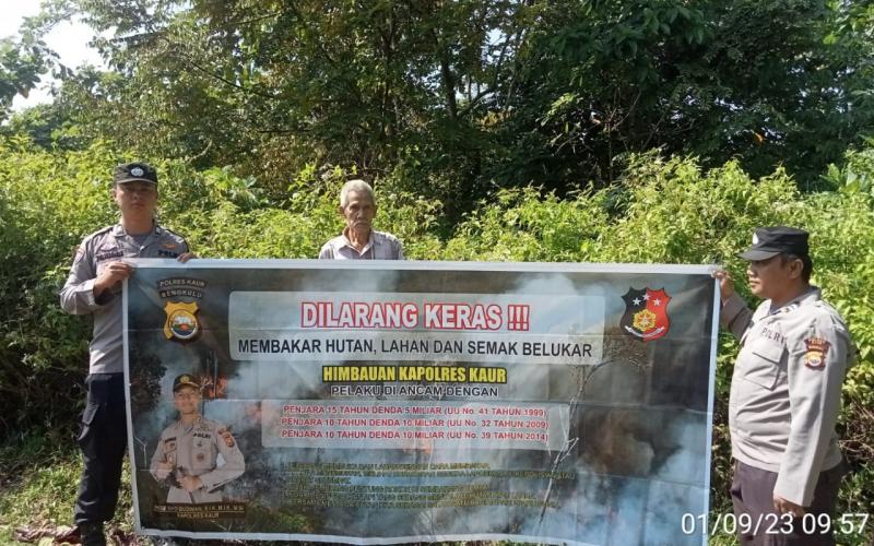 Kaur - Untuk mengantisipasi terjadinya kebakaran hutan dan Lahan, Polsek Maje Polres Kaur Polda Bengkulu melaksanakan imbauan tentang kebakaran hutan lahan (Karhutla) kepada Masyarakat di wilayah hukum Polsek Kaur Tengah, Jumat (01/09/2023).