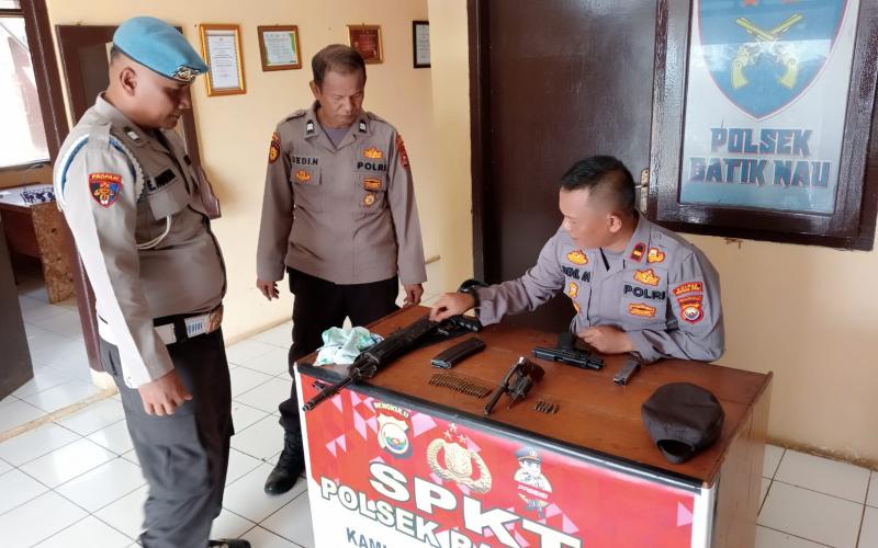 “Pemeriksaan Senpi (senjata api) inventaris Polsek Batiknau dilaksanakan secara rutin dilakukan sedangkan senpi penjagaan dilaksanakan pada saat serah terima penjagaan, dari regu jaga lama diserahkan kepada regu jaga baru yang dipimpin oleh Ka SPK. Dari petugas jaga lama diserahkan kepada petugas jaga baru (Ka SPK) sebagai komandan jaga pada hari itu memeriksa dengan baik itu barang inventaris penjagaan termasuk buku mutasi, tahanan, dan senjata, yang diketahui oleh Ka SPK,” kata Kapolsek.