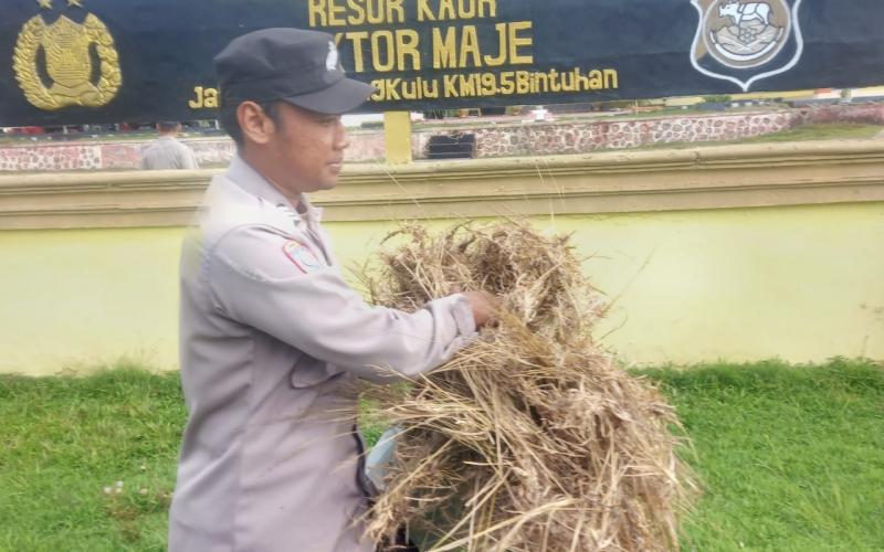 Kaur - Polsek Maje Polres Kaur Polda Bengkulu melaksanakan Sabtu Lingkungan (Saling) Kerja Bakti/gotong royong bersama di Mako Polsek Maje Desa Suka Menanti Kecamatan Maje Kabupaten Kaur, Sabtu, (23/09/2023) Pukul 08.24 WIB s/d Selesai.