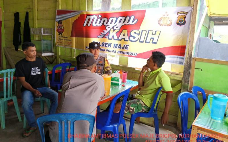Kaur - Polsek Maje Polres Kaur Polda Bengkulu, melaksanakan kegiatan Minggu Kasih dengan warga Desa Linau Kecamatan Maje, Pada hari Minggu di(22/10/2023) sekira pukul 09.20 WIB.