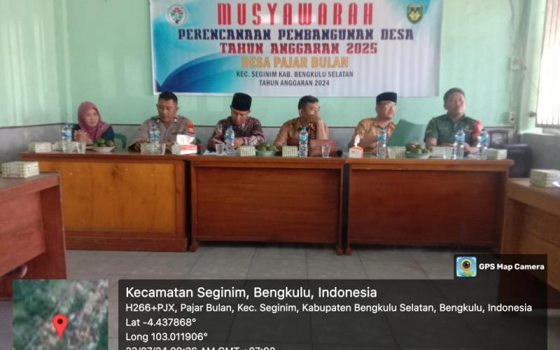 Bengkulu Selatan – Kanit Binmas Polsek Seginim mewakili Kapolsek Pino Polres Bengkulu Selatan Polda Bengkulu, Aiptu Sigit Hartanto menghadiri Musyawarah Rencana Pembangunan Desa Rencana Kerja Tahun 2025, desa Pajar Bulan Kecamatan Seginim kabupaten Bengkulu Selatan, Selasa (23/07/24).