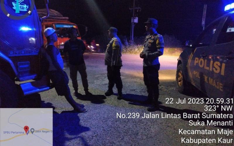 Kaur - Dalam rangka atisipasi 3C (Curat,Curas,Curanmor) dan Premanisme di Wilayah hukum Polsek Maje Polres Kaur Polda Bengkulu, melakukan Giat Patroli KRYD, Sabtu (22/07/2023) malam.