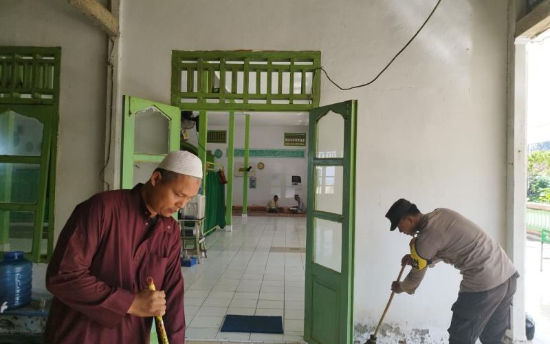 Kaur - Dalam rangka menjalin Silahturahami dan kedekatan dengan Masayarakat, Polsek Maje Polres Kaur Polda Bengkulu, melaksanakan kerja bakti dan gotong royong bersama masayrakat Suka Menanti di Masjid Muhajirin Desa Benteng Harapan kecamatan Maje kabupaten Kaur, Sabtu (10/06/2023).