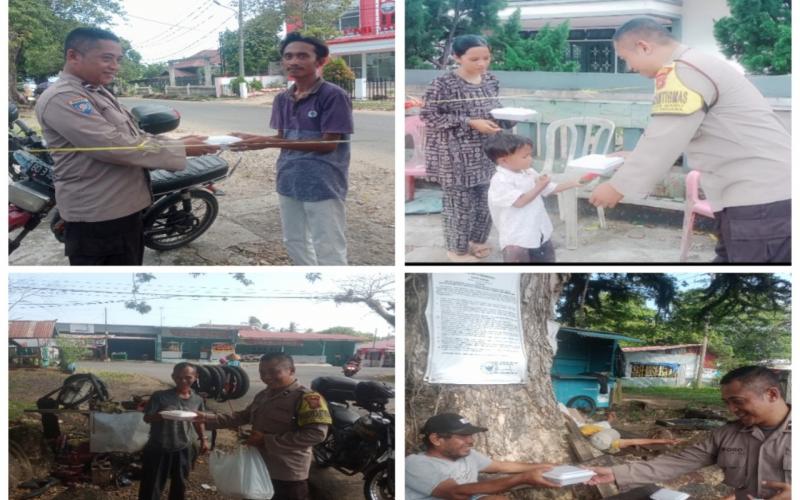 Dalam kesempatan itu, Aipda Woro membagikan nasi bungkus kepada warga setempat.