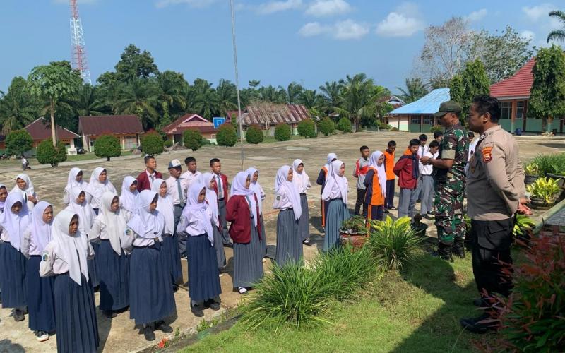 Terjun dalam Pelatihan, Kanit Binmas Polsek Pino sembari menyampaikan pesan pesan kamtibmas tentang Peraturan Baris Berbaris sebagai dasar siswa siswi yang terpilih menjadi Pasukan Pengibar Bendera pada Upacara HUT RI ke-78 di Kecamatan Pino.