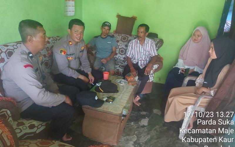 Kaur - Bertempat di Rumah Sdr Merwan Iskandar Selaku Ketua Panitia Pilkades, Desa Bakal Makmur Kecamatan Maje Kabupaten Kaur. Polsek Maje Polres Kaur Polda Bengkulu melaksanakan koordinasi jelang Pemilihan Kepala Desa, Selasa (17/10/2023) Pukul 13.00 WIB.