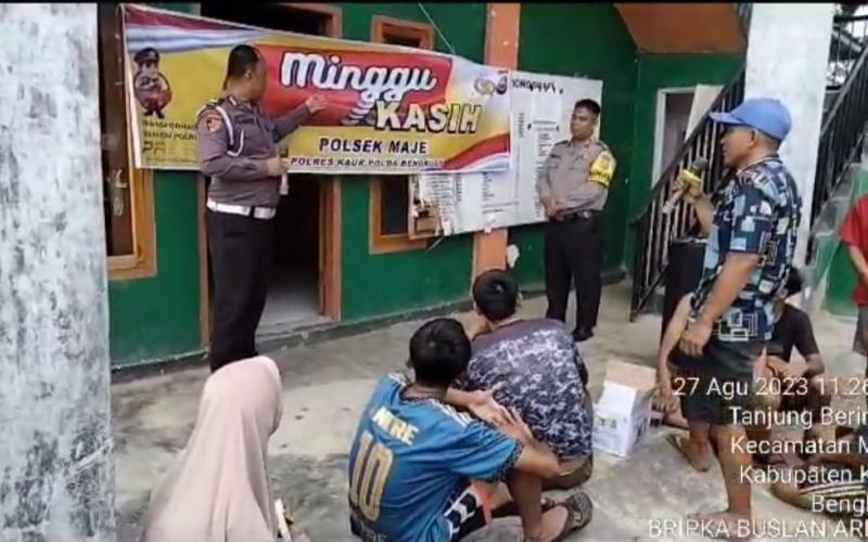 Kaur - Polsek Maje Kaur Polda Bengkulu, melaksanakan kegiatan Minggu Kasih di Desa Tanjung Beringin Kecamatan Maje Kabupaten Kaur, Pada hari Minggu (27/08/2023) sekira pukul 11.20 WIB.