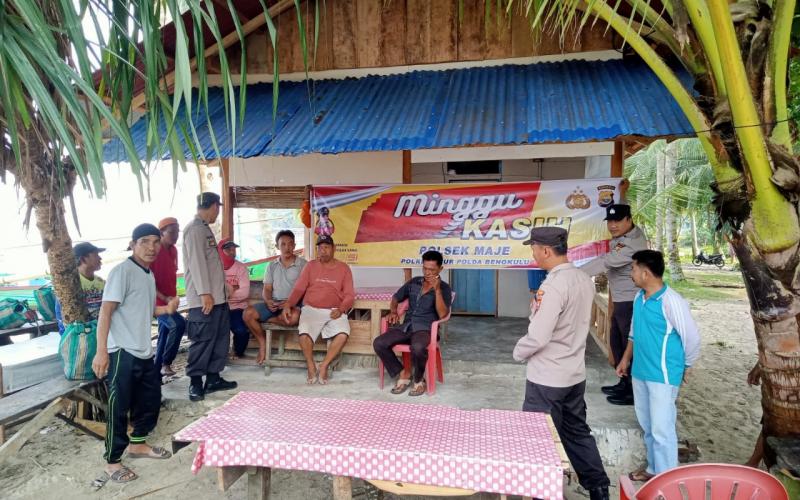 Kaur - Polsek Maje Polres Kaur Polda Bengkulu, melaksanakan kegiatan Minggu Kasih dengan warga Desa Linau Kecamatan Maje, Pada hari Minggu (03/09/2023) sekira pukul 09.20 WIB.