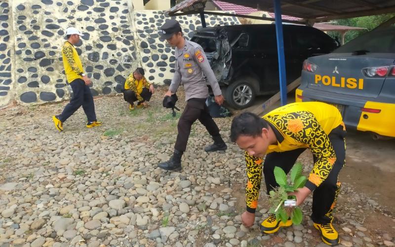 Dalam menjalankan kegiatan ini, anggota Polsek Batiknau bekerja sama untuk memberantas rumput liar dan membersihkan sampah di sekitar Mako.