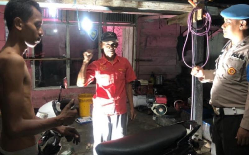Bengkulu Utara - Kanit Paminal Polsek Batiknau Polres Bengkulu Utara Polda Bengkulu, Aipda E Panjaitan melakukan sambang dan silaturahmi dengan masyarakat Desa Paninjau dan menyampaikan pesan – pesan kamtibmas, Sabtu (28/10/23).