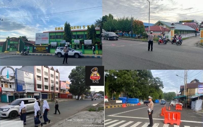 Bengkulu – Personel Satlantas Polresta Bengkulu melaksanakan kegiatan Turlalin Commander Wish (CW) pagi di berbagai titik strategis di Kota Bengkulu pada Senin, 10 Maret 2025. Kegiatan ini dimulai sejak pukul 06.30 WIB dengan tujuan mengantisipasi kepadatan lalu lintas, khususnya di area sekolah, perkantoran, dan simpang jalan utama.