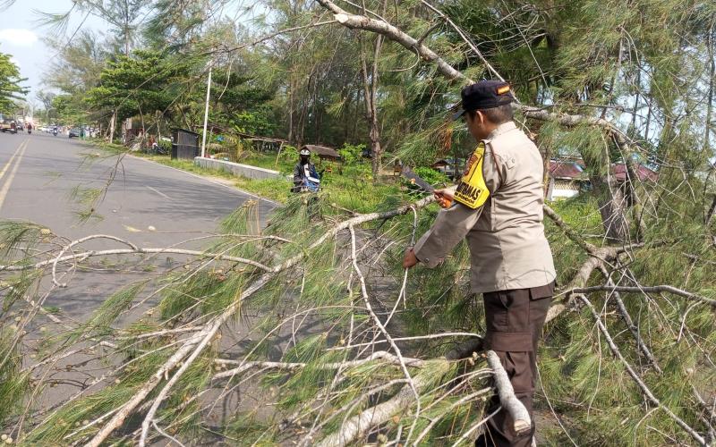 Di lokasi, petugas segera melakukan evakuasi dengan memotong batang pohon menggunakan alat seadanya, seperti parang, kemudian menyingkirkan potongan kayu dan pohon cemara ke tepi jalan. Selain itu, petugas juga melakukan pengaturan lalu lintas guna mengurai kemacetan dan memastikan keselamatan pengguna jalan.