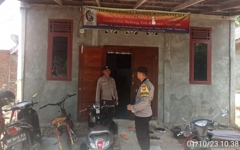Kaur - Polsek Maje Polres Kaur Polda Bengkulu, melaksanakan Pengamanan Gereja di Wilayah hukum Polsek Maje Kecamatan Maje Kabuapten Kaur, Minggu, (01/10/2023) Pukul 10.00 WIB s/d Selesai.
