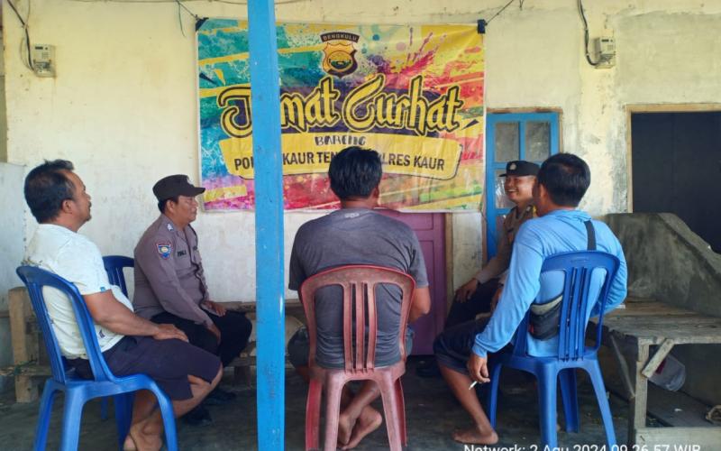 Kaur – Personel Polsek Kaur Tengah Polres Kaur Polda Bengkulu, melaksanakan giat Jumat Curhat dengan Warga di Desa Tanjung Pandan Kecamatan Kaur Tengah Kabupaten Kaur, Jumat (02/08/2024), sekira pukul 09.20 Wib.
