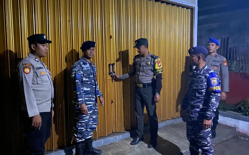 Usai melaksanakan silaturahmi, personel gabungan Polri-TNI AL melaksanakan patroli bersama ke rumah-rumah warga yang ditinggalkan mudik pemiliknya.