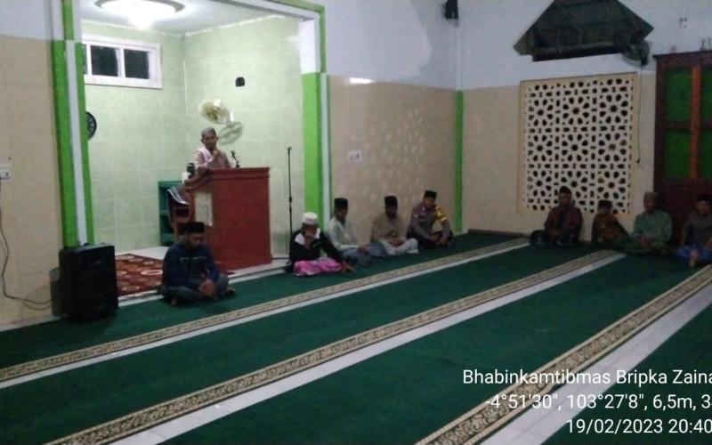 Kegiatan Bhabinkamtibmas menghadiri acara Peringatan Isra Mi’raj 1444 H. dimasjid At Taqwa Desa Sukamenanti Kecamatan Maje Kabupaten Kaur disambut antusias oleh masyarakat setempat, sehingga dapat menanamkan rasa cintanya kepada Allah SWT dan menambah ilmu agama untuk bekal di akhirat nanti.