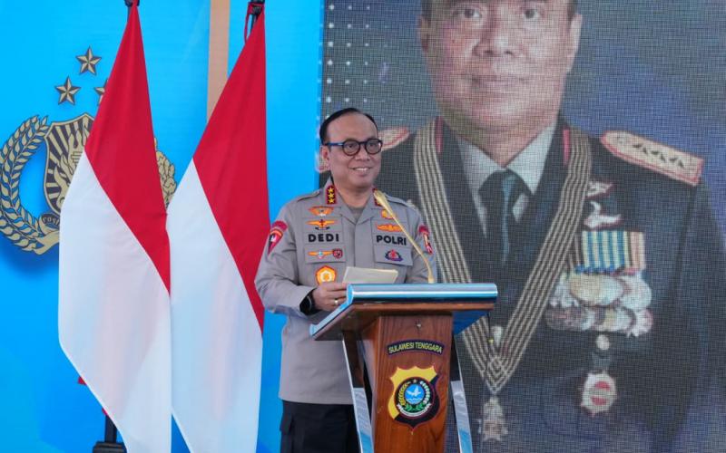 Komitmen tersebut diwujudkan melalui pembangunan Markas Komando (Mako) Satuan Brimob di wilayah Sulawesi Tenggara, yang ditandai dengan kegiatan peresmian pertapakan Mako Brimob dan penyerahan hibah lahan.