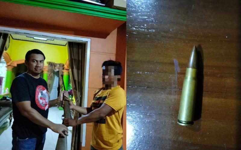 "Senpi rakitan jenis laras panjang yang diserahkan warga ini berkaliber 5.56 dengan 1 butir peluru," kata Kapolsek Maje.