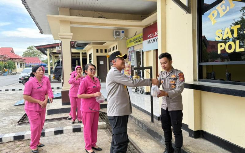 Kaur – Kapolres Kaur AKBP Alam Bawono, S.I.K., M.Tr.Opsla bersama Ketua Bhayangkari Cabang Kaur Ny. Daulika Alam dan pengurus Bhayangkari melaksanakan kegiatan berbagi takjil pada minggu terakhir bulan suci Ramadan kepada masyarakat dan personel di lingkungan Polres Kaur, Senin (16 Maret 2026) sekitar pukul 16.30 WIB.