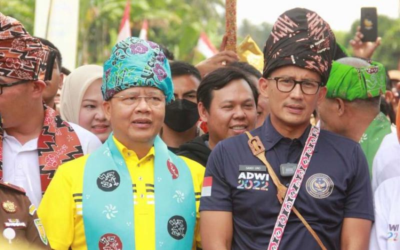 Klikwarta.com - Menteri Pariwisata dan Ekonomi Kreatif (Menparekraf) Sandiaga Salahuddin Uno atau biasa dipanggil Sandiaga Uno berkunjung ke Desa Belitar Seberang Kabupaten Rejang Lebong, Selasa (2/8/2022).