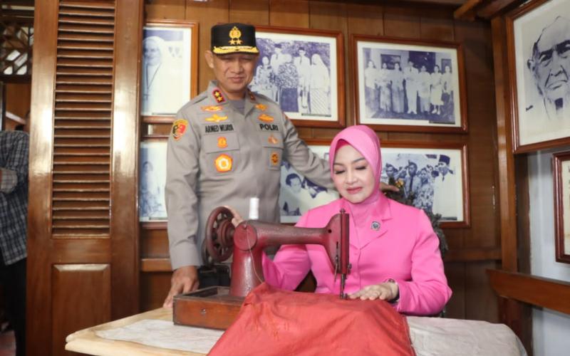 Selama kunjungannya, Kapolda Bengkulu beserta istri menyempatkan diri untuk berpoto dan memegang mesin jahit yang di pergunakan untuk menjahit sang saka merah putih.