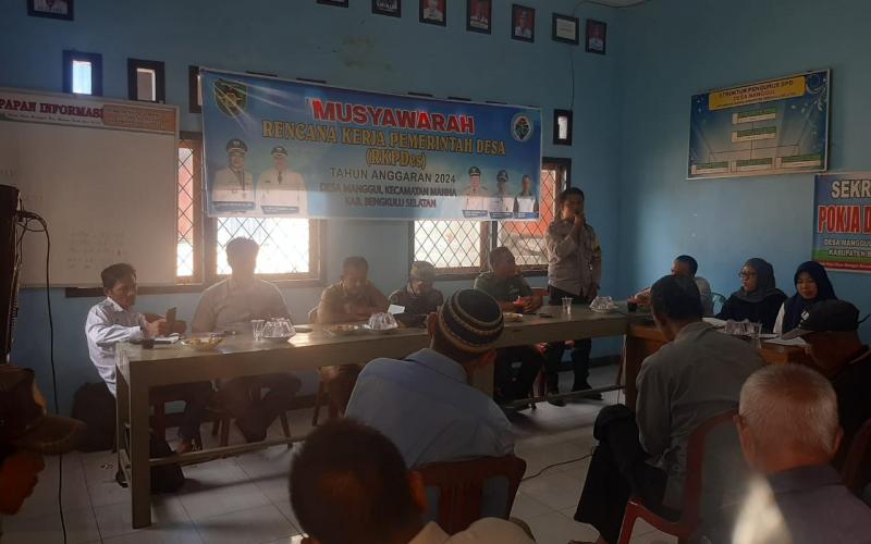 Kapolres Bengkulu Selatan Akbp Florentus Situngkir, SIK melalui Kapolsek Manna Iptu Hendrayanto, SH, MH mengatakan, "kegiatan Musyawarah Pembangunan Desa dan Perancangan RKP Des Rencana Kerja Tahun 2024 Desa Manggul Kecamatan Manna, harus didampingi Bhabinkamtibmas Desa Manggul.