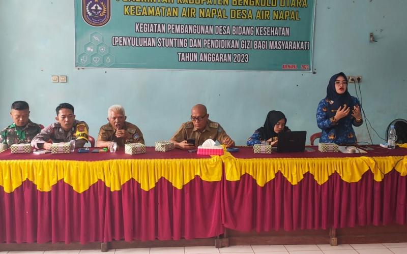 Bengkulu Utara - Penyuluhan Stunting dan pemberian pendidikan tentang Gizi bagi masyarakat dihadiri oleh Personil Polsek Air Besi Brigpol Suryadi Saputra, S.H.m di aula Kantor Desa Air Napal, Senin (17/07/2023).