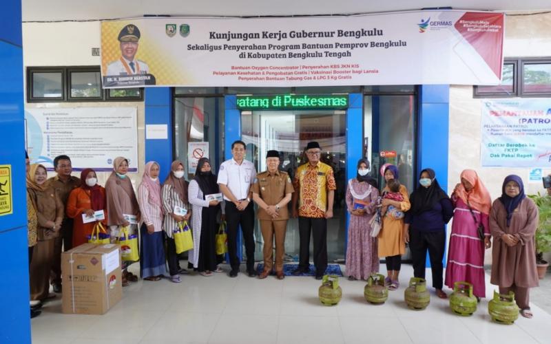 Bukan hanya tabung gas LPG 3Kg, Gubernur Rohidin juga menyerahkan secara simbolis sebanyak 2151 Kartu Bengkulu Sejahtera (KBS), 100 Oxygen Concentrator, bertempat di Puskesmas Pekik Nyaring Kec. Pondok Kelapa Kab. Bengkulu Tengah, Senin (5/12/2022).