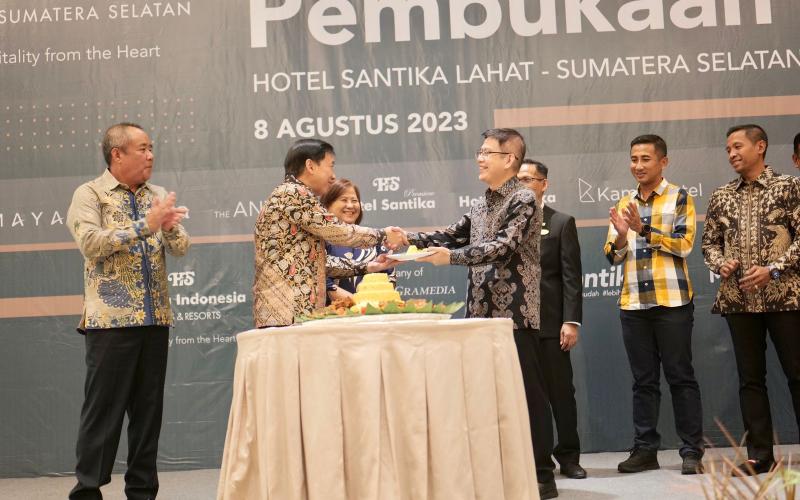 Santika Indonesia Hotels & Resorts menghadirkan Hotel Santika Lahat – Sumatera Selatan sebagai pilihan akomodasi terbaik di Kabupaten Lahat. Peresmian Hotel Santika Lahat – Sumatera Selatan ditandai dengan penandatanganan prasasti oleh Bupati Lahat, H. Cik Ujang SH. Penandatangan prasasti kemudian dilanjutkan dengan pemotongan tumpeng oleh Komisaris Utama PT Lentera Damai Indonesia, Bapak Supardi Sukanta, sebagai perusahaan pemilik Hotel Santika Lahat – Sumatera Selatan. Potongan tumpeng kemudian diberikan kepada Bapak Johanes Widjaja selaku Direktur Utama PT Grahawita Santika dan diteruskan kepada Bapak Salman Marak Uma selaku General Manager Hotel Santika Lahat – Sumatera Selatan. Prosesi disaksikan oleh jajaran Forkopimda Kabupaten Lahat, jajaran direksi PT Lentera Damai Indonesia, jajaran direksi PT Grahawita Santika dan para tamu undangan.